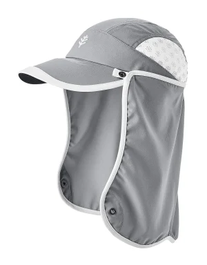 Coolibar – UV Sportcap met nekbescherming voor kinderen – Agility – Staalgrijs/Wit
