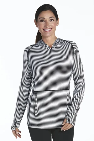 Coolibar – UV-hoodie dames – zwart / wit gestreept