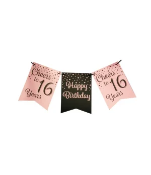 16 jaar Vlaggenlijn – 6 meter – roze en zwart