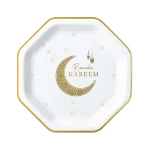 Bordjes – 8 stuks – 23 cm – Ramadan Kareem – wit / goud
