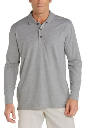 Coolibar – UV-poloshirt voor heren lange mouwen – Heidegrijs
