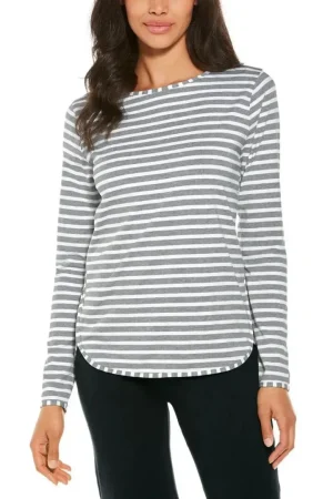 Coolibar – UV Side Split Shirt voor dames – Lange mouw – Heyday – Gestreept – Grijs/Wit