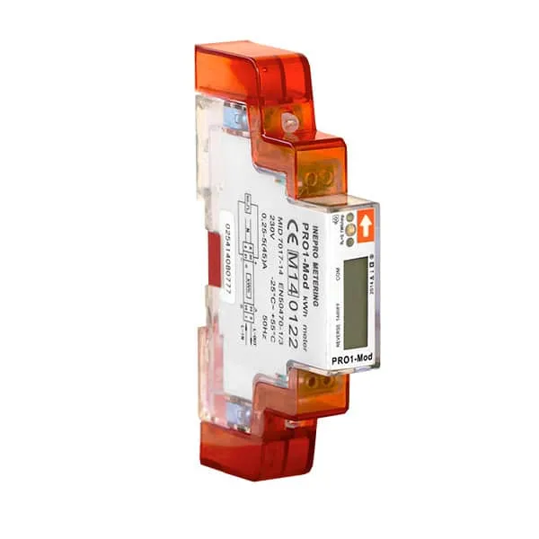 De kleinst verkrijgbare conventionele 1-faseDIN-rail, klasse B (tot 1%), elektronische kWh meter met digitaal LCD (5+2) cijferig display. Afmetingen (LxBxD): 116×17,5x63mm. IP51, beschermingsklasse II. Voldoet aan Measuring Instruments Directive richtlijn (MID B+D), geschikt voor verrekening met derden in alle EU-landen.
