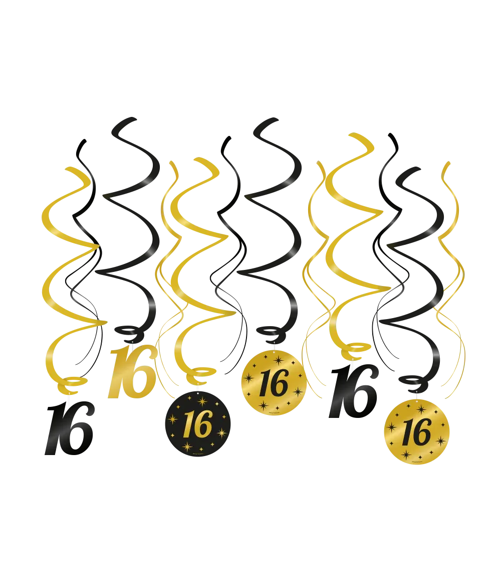 16 jaar Swirl slingers – 6 stuks – goud en zwart – Classy
