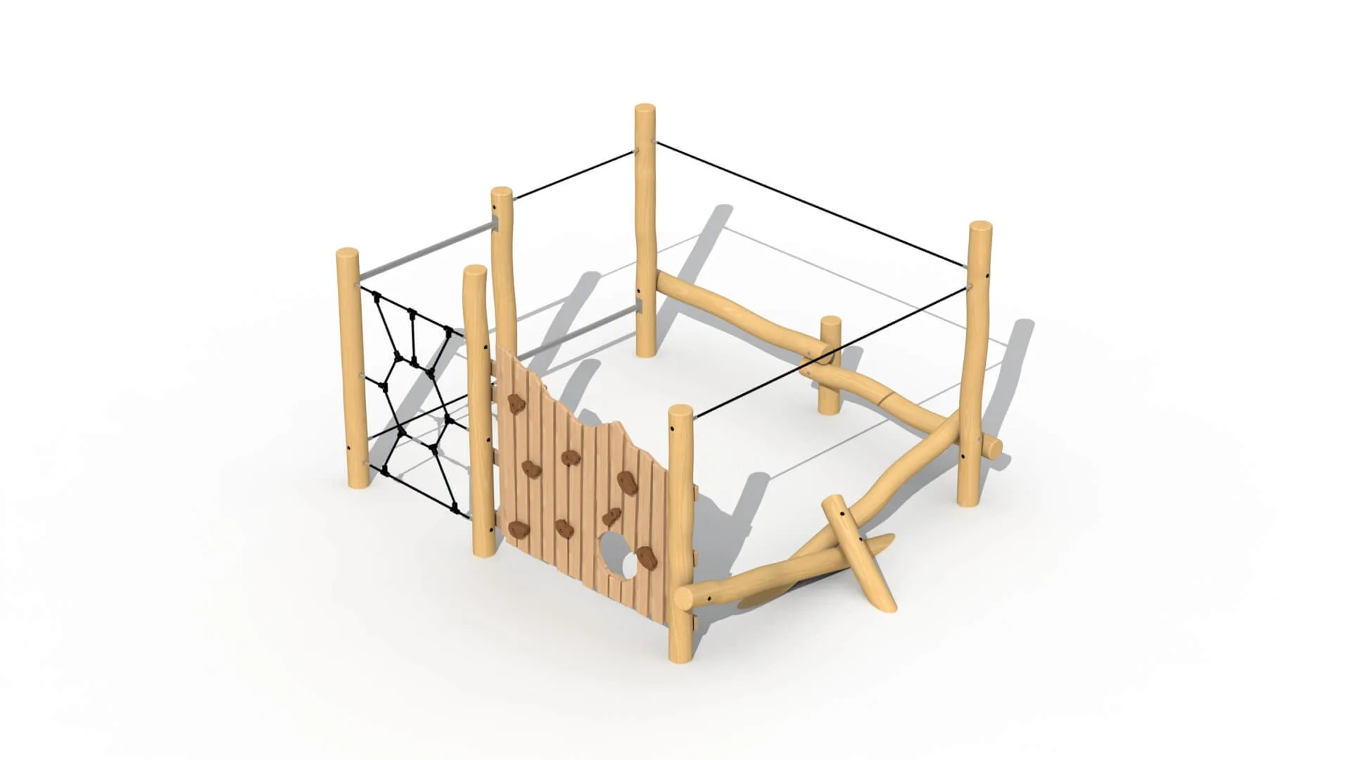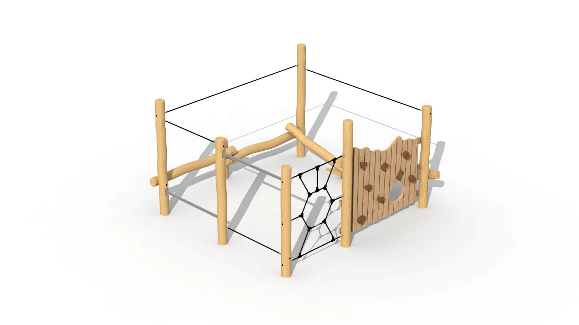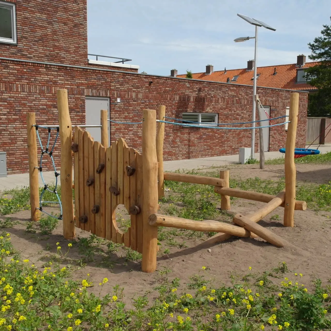 Eén van de vele speeltoestellen uit de Robinia serie; klimmen, klauteren en balanceren kan allemaal op dit speeltoestel. Robinia is vooral kenmerkend door zijn natuurlijke uitstraling. De vormgeving van deze loofboom is bepalend bij de speeltoestellen doordat het hout een natuurlijke kromming kent die aantrekkelijk is voor spelende kinderen. De speeltoestellen worden dan ook stuk voor stuk met de hand vervaardigd. Door gebruik te maken van een Europese gecertificeerde houtsoort wordt het tropisch regenwoud beschermd. Een PEFC-certificaat is voorhanden. Het oppervlak van de Robinia palen is egaal glad en splintervrij, de scherpe kanten worden netjes afgerond. Bouten en schroeven zijn verzonken. Alle Robinia speeltoestellen zijn gecertificeerd en worden geleverd met logboek en certificaat.