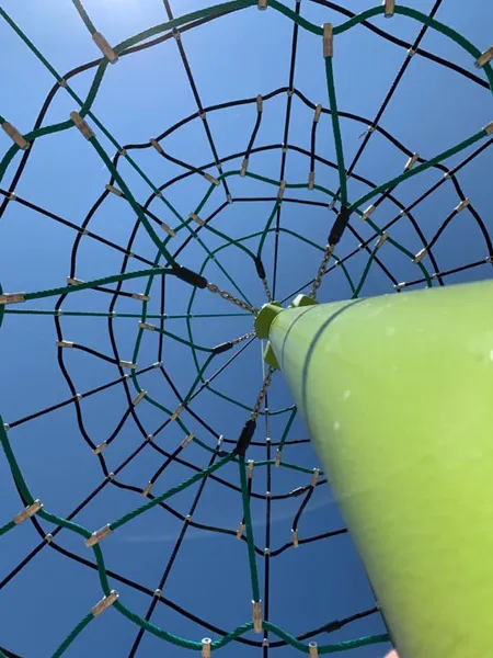De Arcos klimpiramide met een hoogte van maar liefst vijf meter. Een metalen gecoate staander met een klimnet constructie waarin twee horizontale netten zijn verwerkt. Alle klimpiramides zijn gecertificeerd en worden geleverd met logboek en certificaat.