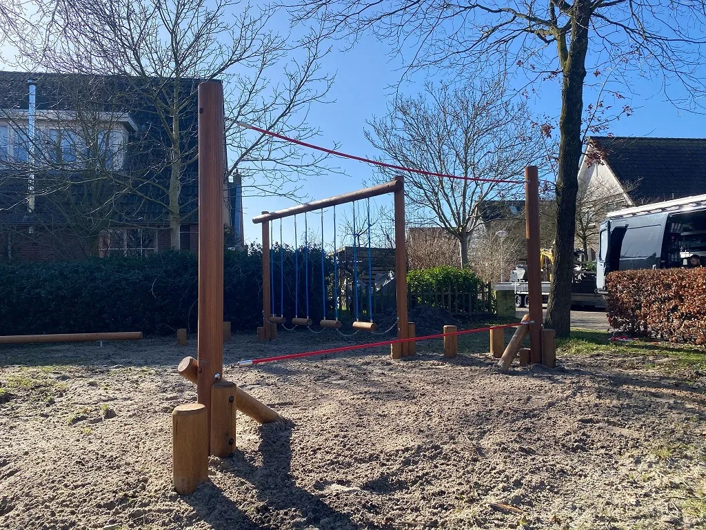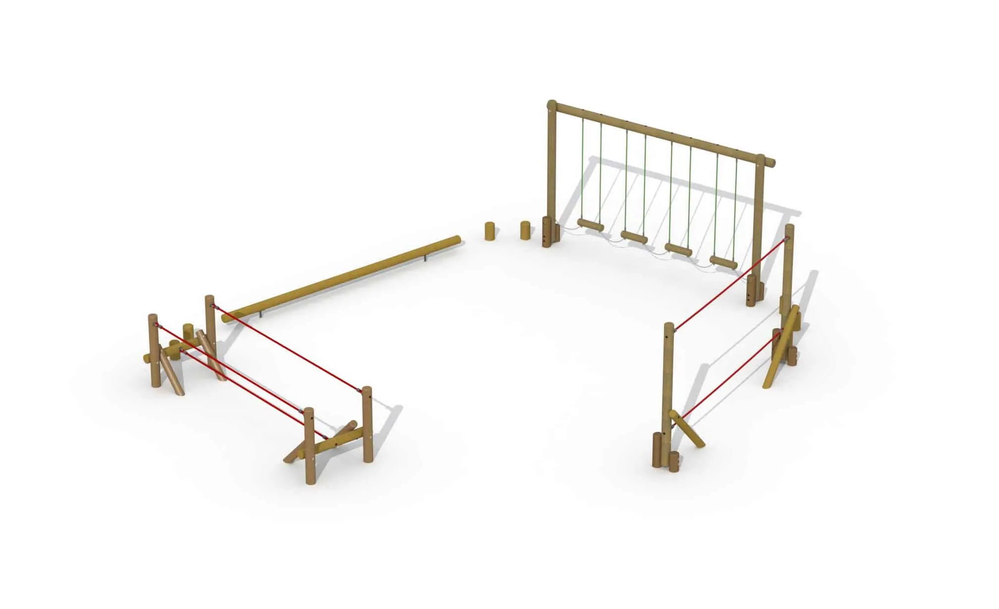 Een leuk avonturenpad met uitdagende speeltoestellen. Dit toestel is een combinatie van speeltoestellen met losse stappalen. Het toestel mag vanwege de valhoogte op gras worden geplaatst. Dit toestel bestaat uit de Hercules, Robin Hood, Robin Crusoe, Zorro, en 10 stappaaltjes.