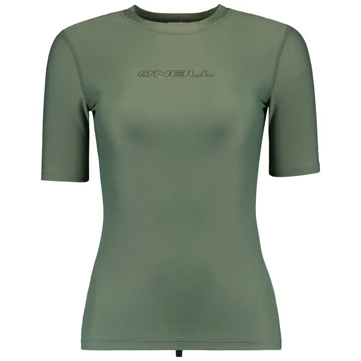 Minder smeren meer genieten! UV beschermende T-shirts zorgen ervoor dat je langer van de zon kunt genieten! Het grote voordeel van een lycra UV T-shirt is dat je je niet constant in hoeft te smeren en dat het lichaam optimaal wordt beschermd tegen verbranding, ook in het water! De UV factor die de dames lycra T-shirts bieden is ongeveer 50+ SPF. O’Neill UV T-shirts zijn waterbestendig, gemaakt van lichtgewicht materialen en verkrijgbaar in coole graphics. U.P.F. 50+ UV protection Slim Fit 6OZ Nylon Rash protection Quick dry Spandex 4-way stretch