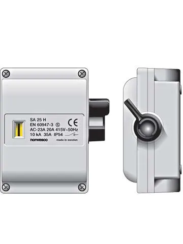 De SA serie is gemaakt van gerecycled slagvast thermo-plastic en heeft de hendel aan de zijkant, waardoor ze uitzonderlijk plat zijn en dus zelfs in de kleinste ruimtes toepasbaar. Ondanks deze compacte bouwvorm is binnenin voldoende ruimte om kabels aan te sluiten. Ze kunnen machines tot 11kW schakelen. Voor je beeldvorming: 11kW komt neer op ongeveer 10 stofzuigers die tegelijkertijd aan staan. Ze zijn ideaal voor het schakelen van machines en airco’s. Er zijn uitvoeringen voorzien van een hulpcontact en ze zijn zo gebouwd dat vuil zich en niet gemakkelijk aan hecht. Voor extra veiligheid kan je ze voorzien van een hangslotvergrendeling. De SA Serie is bij temperaturen tussen -30 en +50 graden te gebruiken.