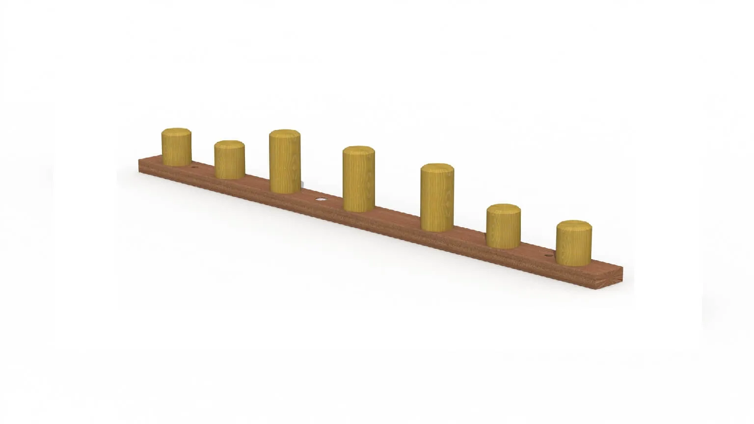 De allerkleinsten kunnen hun balans trainen op het balanceertoestel Springpaaltjes. Wie haalt de overkant zonder de grond te raken? Dit toestel is vervaardigd van hout en is speciaal ontworpen zodat deze eenvoudig op een verharde ondergrond geplaatst kan worden.