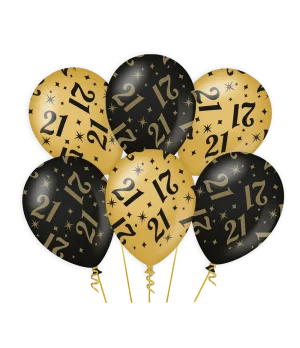 21 jaar Ballonnen – 6 stuks – 30 cm – goud en zwart – Classy